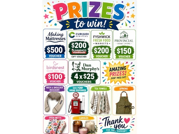 As a thank you for all your generosity on the day, the person or business who bids the greatest collective amount at the event, will be thanked with a $200 Bunnings voucher donated by Curijudi Services.